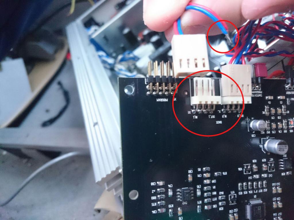 В общем вскрыл дома. Плату DSP открутил. Непропая, дефектов на плате, сгоревших дорожек не нашел. Унес вскрытый в машину. Подключил. По закону подлости работать нормально он стал сразу. Манипуляции с проводами выявили помехи при касании штекера (за качество фото извиняюсь)