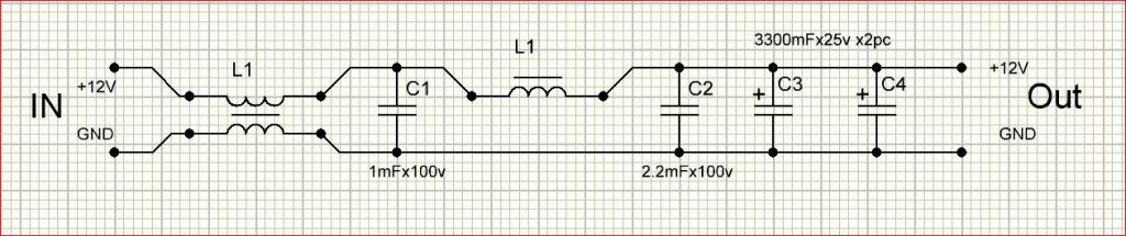 БП импульсный, поэтому имеет привычку фонить во все что можно и в бортовую сеть автомобиля тоже. Поэтому и ставят входной фильтр.