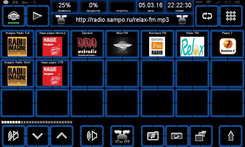 1. Создаём список станций в этом окне: 2. Закрепляем станции в этом окне: 3. В каталоге ~документы пользователя\iCar\data удаляем файл internetradio.m3u В итоге на первом экране у нас нет станций, а на втором они остаются и при прерывании связи нет перелистывания, как и при медленном коннекте. И ещё вопрос - чем ещё можно проиграть протокол rtmp, кроме VLC? Это ссылка на станцию Радио Рокс: rtmp://radiorocks.cdnvideo.ru/rr/roks.stream?md5=2jvyRzEIdm7AMQyQZaDmyg;e=145971326 4 |
