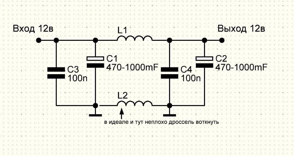А какую схемку? Если помеха прет из мафона(там естественно тоже есть импульсные источники питания типа Кисс), то фильтра вряд ли помогут. Естественно это справедливо если камера "не очень".