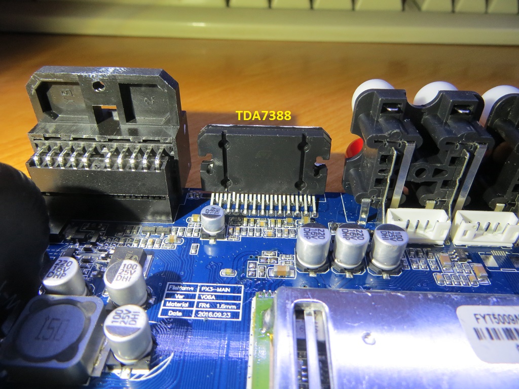 Сразу заменил усилитель мощности и конденсатор по питанию.
