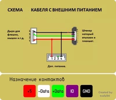 Я и подаю по вышеуказанной схеме. Когда кабель в планшет включен мышь не горит, зарядку берет. Вынимаю из планшета штекер - загорается мышь. Аналогично с флешкой. Такое ощущение что планшету нужно какое то телодвижение чтобы увидеть переферию.