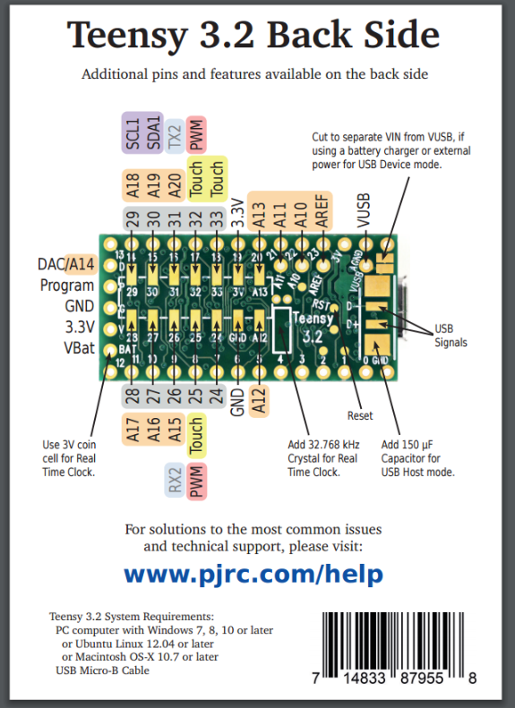 32 bit ARM Cortex-M4 72 MHz CPU (M4 = DSP extensions) 256K Flash Memory, 64K RAM, 2K EEPROM 21 High Resolution Analog Inputs (13 bits usable, 16 bit hardware) 34 Digital I/O Pins (5V tolerance on Digital Inputs) 12 PWM outputs 7 Timers for intervals/delays, separate from PWM USB with dedicated DMA memory transfers 3 UARTs (serial ports) SPI, I2C, I2S,CAN Bus, IR modulator I2S (for high quality audio interface) Real Time Clock (with user-added 32.768 crystal and battery) 16 DMA channels (separate from USB) Touch Sensor Inputs https://www.sparkfun.com/products/13736 На aliexpress эти камни продают рублей по 300, в общем заказал себе одну платку)) находка прям. |