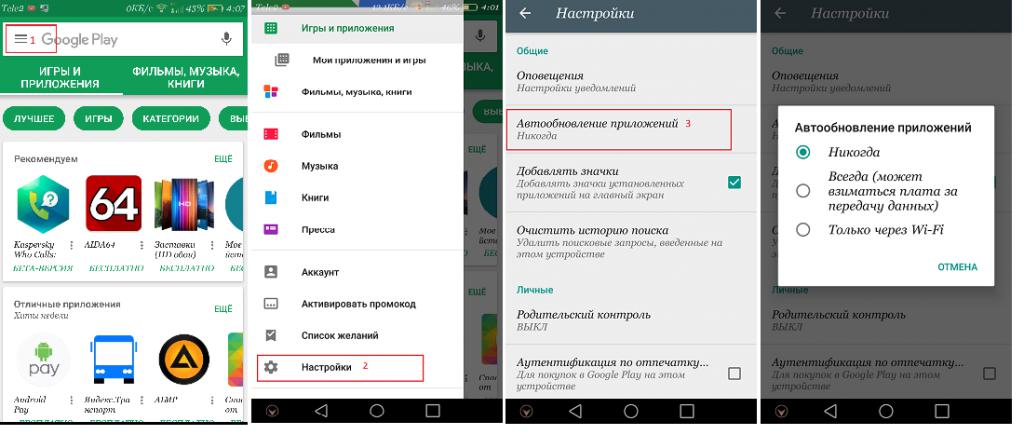 Автообновление отключается в настройках плей-маркета.