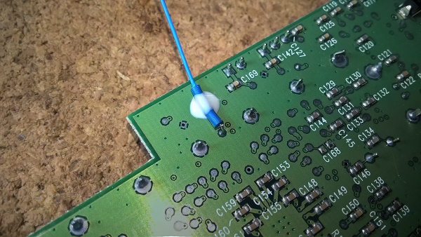 Капаем немного флюса в место соединения и паяем нашим подготовленным паяльником. Скажу, что место пайки надо прогреть (подойдет и фен жены...) поскольку я паяю на обычной плате, то теплоотвод достаточно сильный и наше тонкое жало не в состоянии прогреть площадку. Но такого не будет если паять ленточный шлейф и контакты на нем. После пайки сразу нужно тщательно промыть место контакта для удаления флюса (подойдет спирт, ацетон или изопропанол - у кого, что есть...). Далее нужно зафиксировать проводок, чтобы не оторвать площадку от платы (это можно сделать до того, как паять контакт). Можно использовать клейкие ленты на основе ткани (лейкопластыри и прочее), можно нейтральные герметики... Я пользуюсь последним (чисто китайский продукт - герметик для фиксации радиокомпонентов). Сохнет он достаточно долго - примерно 3-5 часов, но я ни куда не тороплюсь... Герметик хорошо держится на плате, но если надо-достаточно легко удаляется. Последний раз редактировалось skanch; 06.10.2017 в 22:00. |