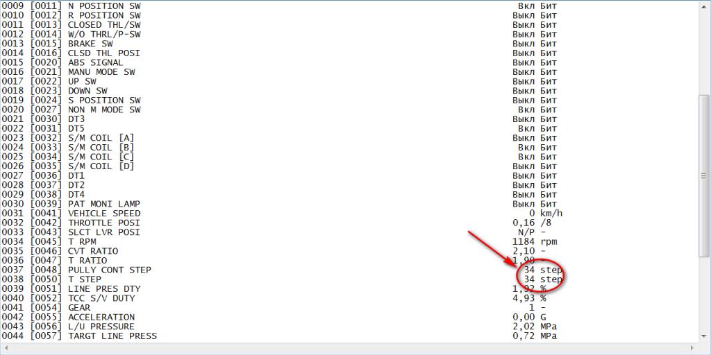 Всем привет! Приехали (кое-как) люди на Примьере 2001 года. Подключаюсь, смотрю. Ни одной ошибки кроме 19 инициал старт, но это даже не ошибка. А вот степ мотор- 96. Сбрасываю 19, степ показания не меняет, отключаю аккумулятор, курю, подключаю. Всё нормально, степ 34, 19- удаляем. Машина едет хорошо, трансмиссия работает как надо, какая команда на степ поступила тот её выполнил без промедления. Выключаешь машину, через час запускаешь, поехал и вся картина повторяется. Подключаешь, смотришь нет даже 19 кода. Вопрос к знатокам CVT. Что я упустил из виду? Что его заставляет "думать" что он должен быть именно в этом положении?