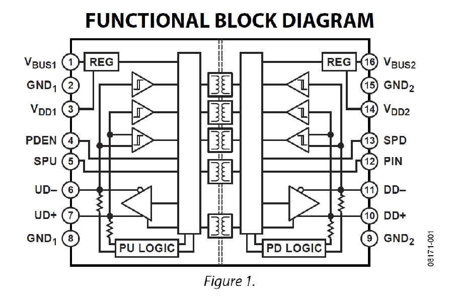 Немного информации о микросхеме, которая применяется в USB - изоляторе с полной развязкой по питанию и линиям передачи данных. Ниже "вольный" перевод из "даташита" на микросхему ADuM4160 :
