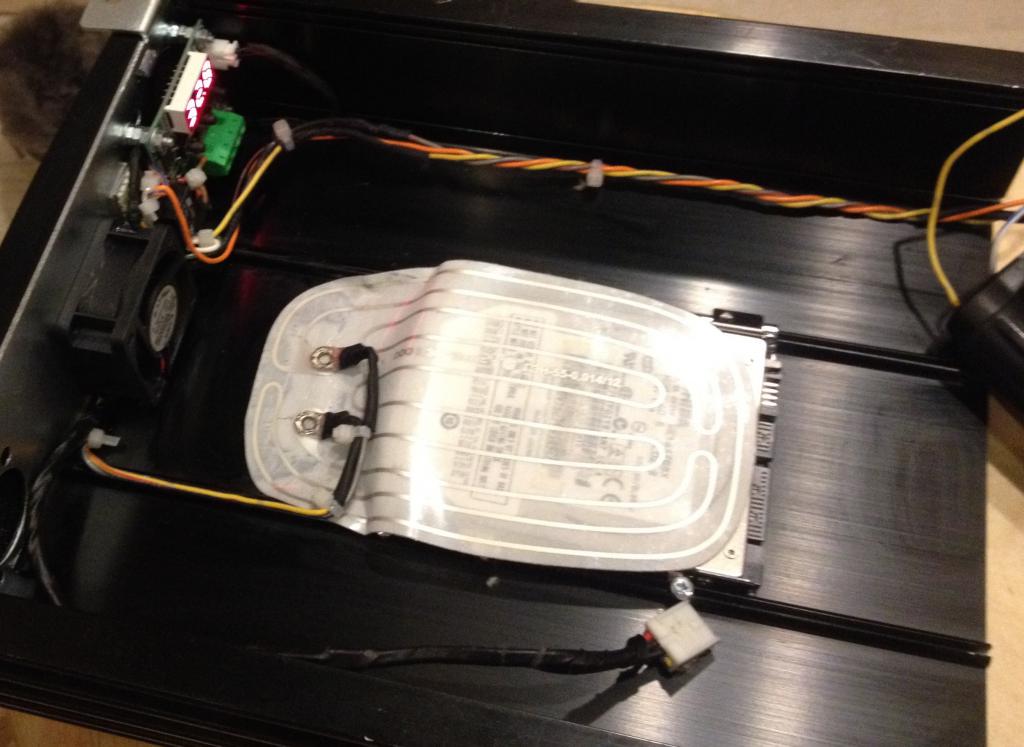 Греющий элемент крепить обязательно снизу - 1. Подогрев мотора, 2 - подогрев электроники, 3 - нормальная передача тепла на корпус диска.