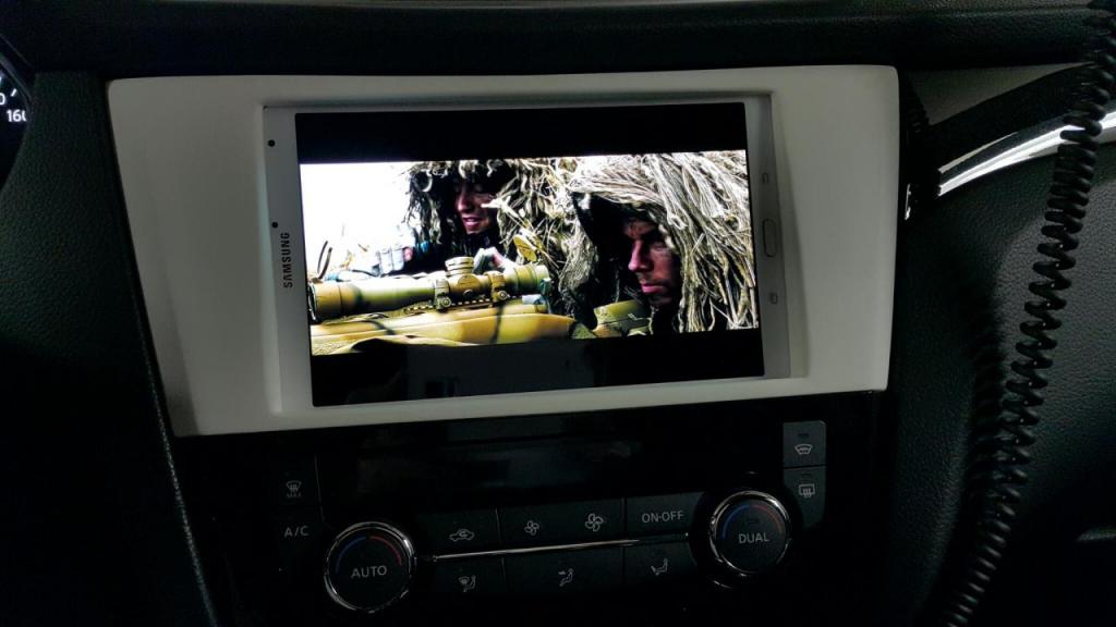 Заклеил планшет черной пленкой. Получилось довольно сносно, не идеал конечно, но пока сойдет. Все ж лучше, чем с белым ездить. Более подробно можно прочитать на драйве. Тут оставлю несколько фоток.