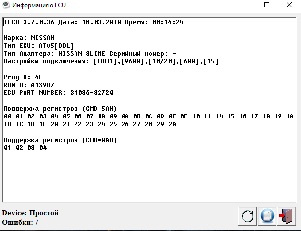 Скриншот, соединяется с ECU только по KL, коробку видит по DDL