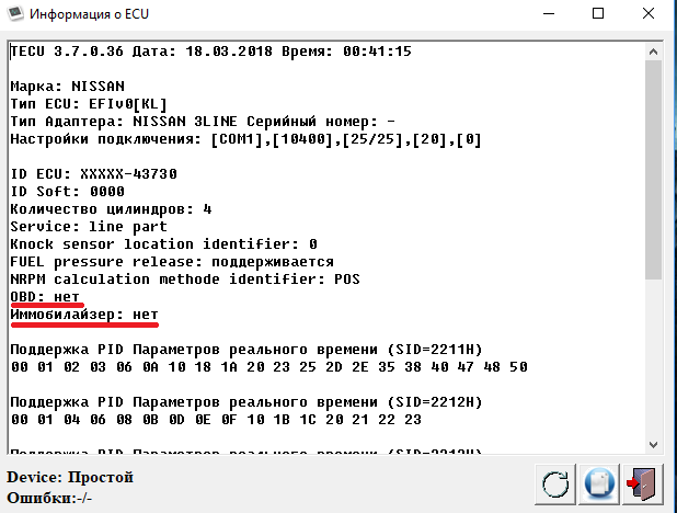 Скриншот, соединяется с ECU только по KL, коробку видит по DDL
