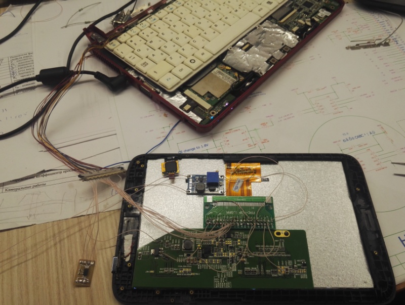 Приветствую, подскажите, может кто знает... Подключил сабжевый 7 дюймовый дисплей к нетбуку по lvds с родного экрана нетбука, тоесть без контроллера, разрешение 1024*600 на родном 10.1" и этом, недостающие напряжения взял с куска платы от какого-то экрана (пульсаций нет проверял осциллографом +3.3, +10, +20, -8), с лвдс бука используется три линии данных и такт (6 бит). Дисплей работает цветопередача в норме, но если смотреть боковым зрением то сильно рябит, мерцает, такое чувство что пиксели включаются через один, запутанно но лучше врятли получится объяснить, если убрать по максимуму яркость и контрастность то мерцание менее заметно но все равно присутствует на белом цвете, при средней яркости на белом фоне проступает как бы мелкая шахматная доска . Длина провода значения не имеет, одинаково работает и при 20см родном проводе и при 1м самодельном. Голову уже сломал, дисплей 100% рабочий, проверял на планшете там все норм, подсветка записана отдельно.