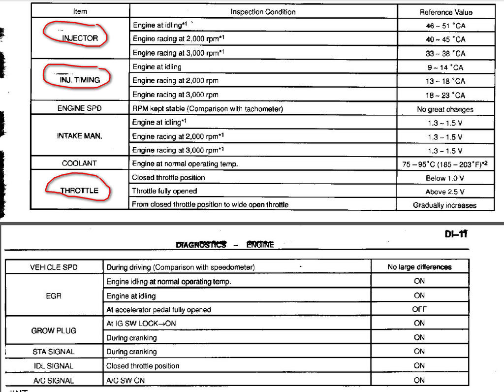 Подключался ли кто-нибудь программой к двигателю 1KZ-TE в праворуком HIACE 2000 через DLC-1? Интересуют параметры. Показывает ли их программа? Особенно, отмеченные. |