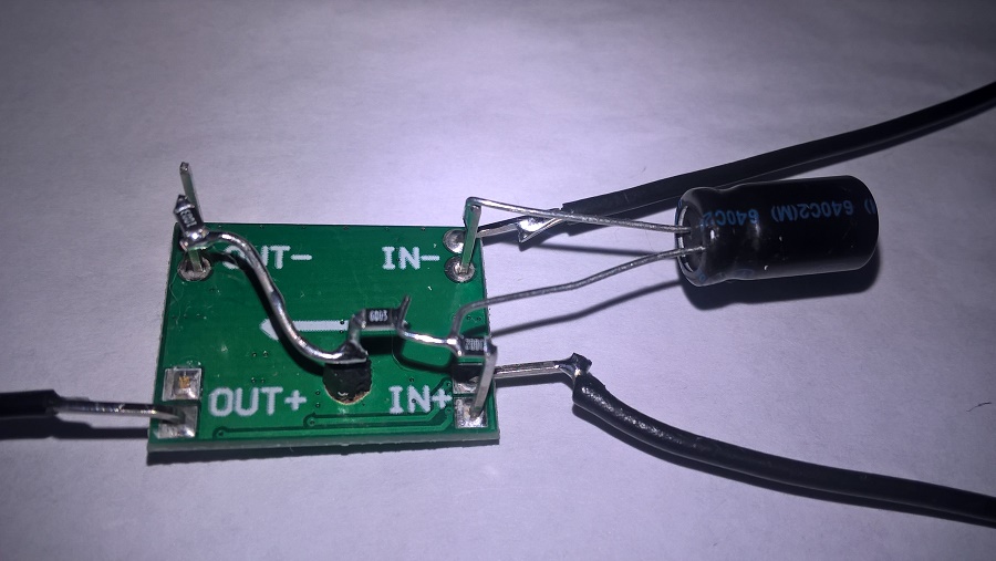 При этом ДС-ДС-1 включается, на выходе его появляется заранее настроенное напряжение 4-4,5В, которое идет на выход соответствующий контакт выходного разъема блока питания.