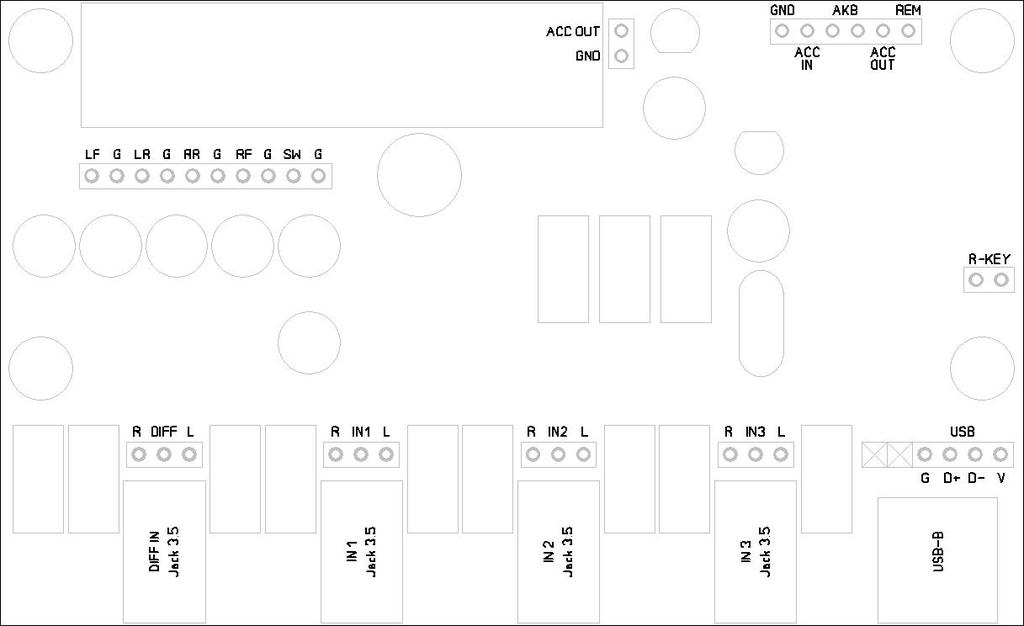 Так же возможно управление с резистивной клавиатуры (4 кнопки), с минимальным функционалом: циклическое переключение источника сигнала для фронта, Mute, громкость больше/меньше.