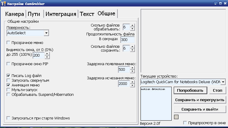 А для того чтобы программа работала, нужно: 1. Запустить CamGrabberSettings 2. Выбрать Устройство, которое будем записывать 3. На вкладке Камеры выставить разрешение, FPS, кодек, настроить параметры кодека. 4. Обязательно поставить галочку - Использовать это устройство 5. Если это устройство дает поток MPEG4 или MPEG2 то галочку Аппаратное сжатие по минимуму для работы - это все, если уже более точная настройка нужна - велком в Описание!