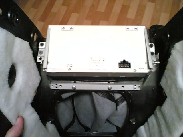 (всю подсветку в машине на белую хочу сменить, монитор мешает сволочь)Крепление просто, кронштейн переворачиваем, фиксируем прижим монитора по бокам винтиками с гаечками, сверлим две дырочки в кронштейне и сопоставляем с винтиками держащими кожух кпп, другие 4 длинных винта-самореза вкручиваем в пластик насквозь, то место с торчащими саморезами ровно закрывается верхней накладкой (главное не промахнуться) и не видно. ![]() |