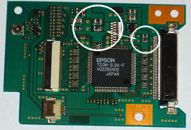симптомы пропадания одного/нескольких битов цвета....причины....неконтакт шлейфа.....загибание ламелек.....непропай микросхемы....и тд |
