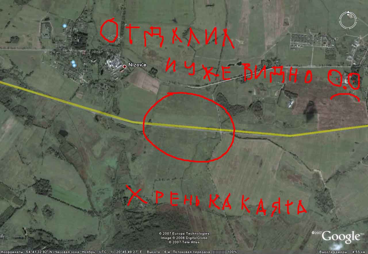 800x600 видимость отличная + удобно управлять из под RR! Но некоторые проблемы остались: Как изменить вид(какбы в 3D(в наклоне кароче)??? Высоту(230м держит и не изменить)??? И главное - не хочет двигаться глобус!!! Держится под точкой сигнала и всё!!!(по началу кстати работало(хз. почему) и то возвращало всёравно в точку, а ща ваще не двигается)![]() ..Высоту изменил(фаил zoom.ini - высота зависит от скорости(не проверял ещё) Последний раз редактировалось Buratino; 23.01.2008 в 23:28. |