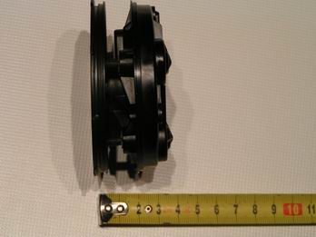 мой экземпляр намного меньше... привод зеркального элемента - диаметр 83мм, а габаритная толщина 33мм (сама площадка в среднем положении)