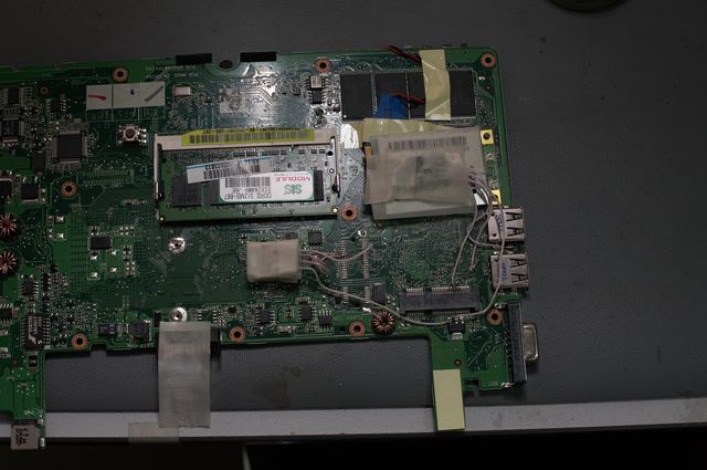 Разъем VGA, запаянный на плату, предусматривает стандартное крепление кабеля. В корпусе бука поленились сделать необходимые отверстия - придется их делать самому + устанавливать переходные гайки крепления. Работы на 10 минут.