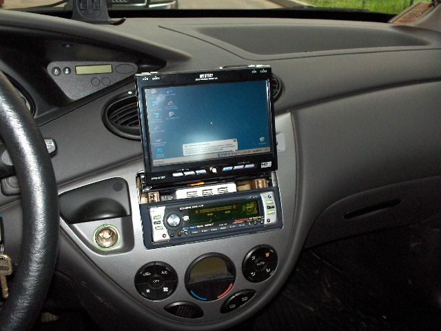 Системник хорошо разместился под торпедо над бардачком - закрепил пластиковым хомутом к арматуре внутри торпедо. Там же нашлось место для GPS-приемника - на трубе каркаса. Там же радиоблок клавы - прикручен к воздуховоду. Наверное, надо будет в воздуховоде рядом с системником сделать вырез - зимой подогревать, летом- охлаждать На системнике переключатель питания: 0. Нет АСС - комп не запускается. 1. АСС при повороте ключа. Комп работает при повёрнутом ключе. 2. АСС сидит на "+". Комп пашет всё время. Имеется кнопка Reset. К кнопке и клавише, а также разъёмам доступ при открытом бардачке. При закрытом бардачке ничего не выдаёт присутствия РС Проблемы: 1. Монитор Mistery: - встал слишком глубоко - придется переставлять. - Вызывает сомнения привод монитора - как-то слишком поскрипывает и подёргивается. Что будет зимой? - Низкая яркость. - После запуска двигателя экран черный до перевключения монитора. 2. РС: - Видеокарта не выдаёт 800х480. Поверстрип не помог. Изображение 640х480 растянутое на весь экран. Видно, но... 3. Soft: - Ну, тут пока пусто... Поставил халявный СитиГид. Прикалывает как он наперебой с iGo8 на навигашке призывает ехать куда не надо, но в разные стороны. Напрягает шум модема при соединении с интернетом через телефон, фоновый шум в динамиках от двигателя. Буду бороться ![]()
