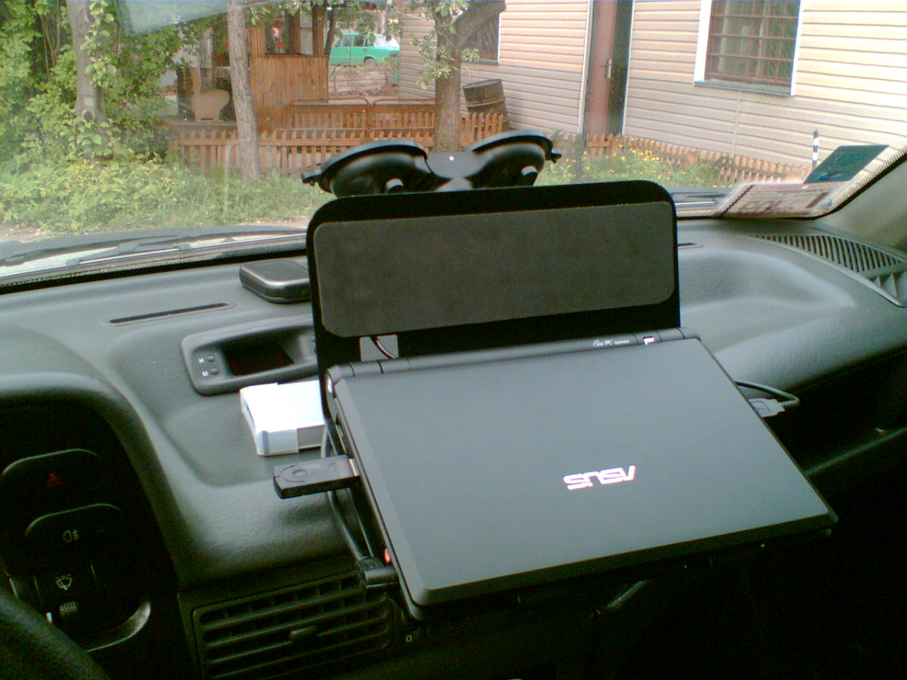 Смотрится не плохо впринципе!!!А как ты сделал это устройство-или купил уже какой то готовый вариант?Планирую ЕЕЕ-шку тоже в машину впихнуть,вот только не знаю как крепить.Жаль нет оригинального крепежа для авто.