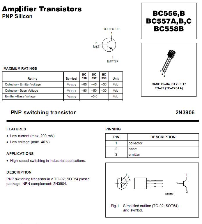 А что, у BC556 и 3906 распиновка одинаковая? | |
