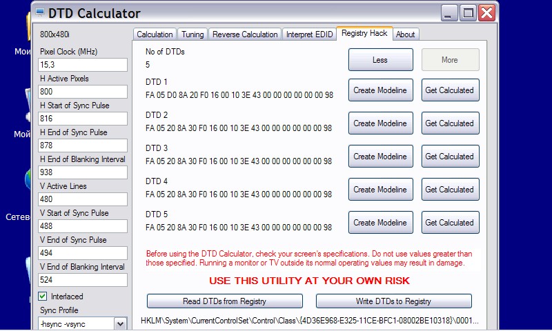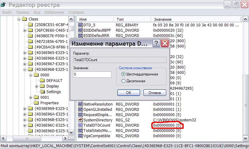 Суть проблемы: интеловская графика (i910, i915, i945...), оккупировавшая привлекательный рынок UMPC, не имеет адаптивного инструментария настройки пользовательских разрешений для non-DDC мониторов и, особенно, мониторов с черезстрочной разверткой. Решаемая задача: подключение монитора штатной навигации (interlaced, pixelclock <20MHz) к Asus eeePC 701 4G. Всеми любимый PowerStrip от EnTech не справляется с поставленной задачей. За период работы (пляски с бубнами) над темой: - внимательно изучены имеющиеся интернет ресурсы. Особо следует отметить наличие полезной, но неисчерпывающей иформации на AVS Forum и Intel® Software Network Knowledge Base Wiki. Да еще заслуживает внимания этот блог, хотя автор и отказался решить задачку за несколько баксов; - проработана техническая документация на чипсет Intel® Graphics Media Accelerator 900 Series Software Developer's Guide; - проведена генерация пользовательских драйверов в соответствии с Intel® Embedded Graphics Drivers and Video BIOS v8.0. Много буковок и никакого результата! В документации нет прямых ограничений на работу чипсета в нужном нам режиме. Не могут они композитную синхронизацию выдавать на CRT порт - это прописано, а про interlaced молчок. Должен работать и не работает! Постепенно осознание проблемы сузилось на некорректной работе связки VBIOS\драйвер. Девелоперы от интела вводят ограничения на пользовательские разрешения исходя из легенды, что ими можно вывести из строя монитор. Но все же - где собака зарыта? Не в драйвере - генерация пользовательского не дает результата. Значит VBIOS, почему-то не нравятся ему тайминги с pixelclock <20MHz. Задача генерации пользовательского VBIOS решаема, но отнимет уйму времени, которого нет. Уже хотел прекратить пляски, но тут натолкнулся на форум любителей подключеня PC к мониторам игральных автоматов. И проблема схожая и утилитка соответствующая есть Soft15khz. Поставил ее не глядя - появилась куча дополнительных возможных разрешений, но нужного нет. Подправил реестр и монитор заработал! При этом LVDS в режиме 800х480р, а CRT -720х480i. Повторяемости получить не удалось, но вынес главное - задача решаема. И решение оказалось очень простым. Ниже приведена методика, которая может быть использована для всего ряда интеловских чипсетов (с родными драйверами) при подключении non-DDC мониторов. Для экспериментов нам необходимо иметь: - значения таймингов для планируемых разрешений non-DDC монитора; - DTD калькулятор от Clevertechnologies; - PowerStrp, не очень старый. У меня 3.78 b616; - не обязательно, но может пригодиться заглушка на D-Sub15. Приступаем к танцу, тьфу - к операции. Пациент, ничего выдающегося - стандартная комплектация, лицензионная ось. Испытания проводились и на обрезанной. Результат аналогичен и на тему не влияет. Чипсет 910, штатные дравера Делаем необходимую пластику реестру. Штатным Regedit. Ищем ключи, содержащие TotalDTDCount Изменяем найденное значение 0 на 5. Заменить эти значения надо во всех строчках реестра (их 18). Так что F3 жать не забываем. Указанная операция позволит нам создать пять пользовательских разрешений для CRT порта. Больше интел не позволяет. Продолжаем операцию. Или руками, или пользуя DTD калькулятор. Прописываем исходные тайминги разрешений, начиная с низшего. Для мониторов штатных навигаций важны параметры interlaced и sync (-hsync -vsync). Для других типов мониторов надо знать параметры синхронизации. Для 720х480i это выглядит так: Для 800х480i Прописываем скалькулированные строчки в реестр. Делать это надо послед