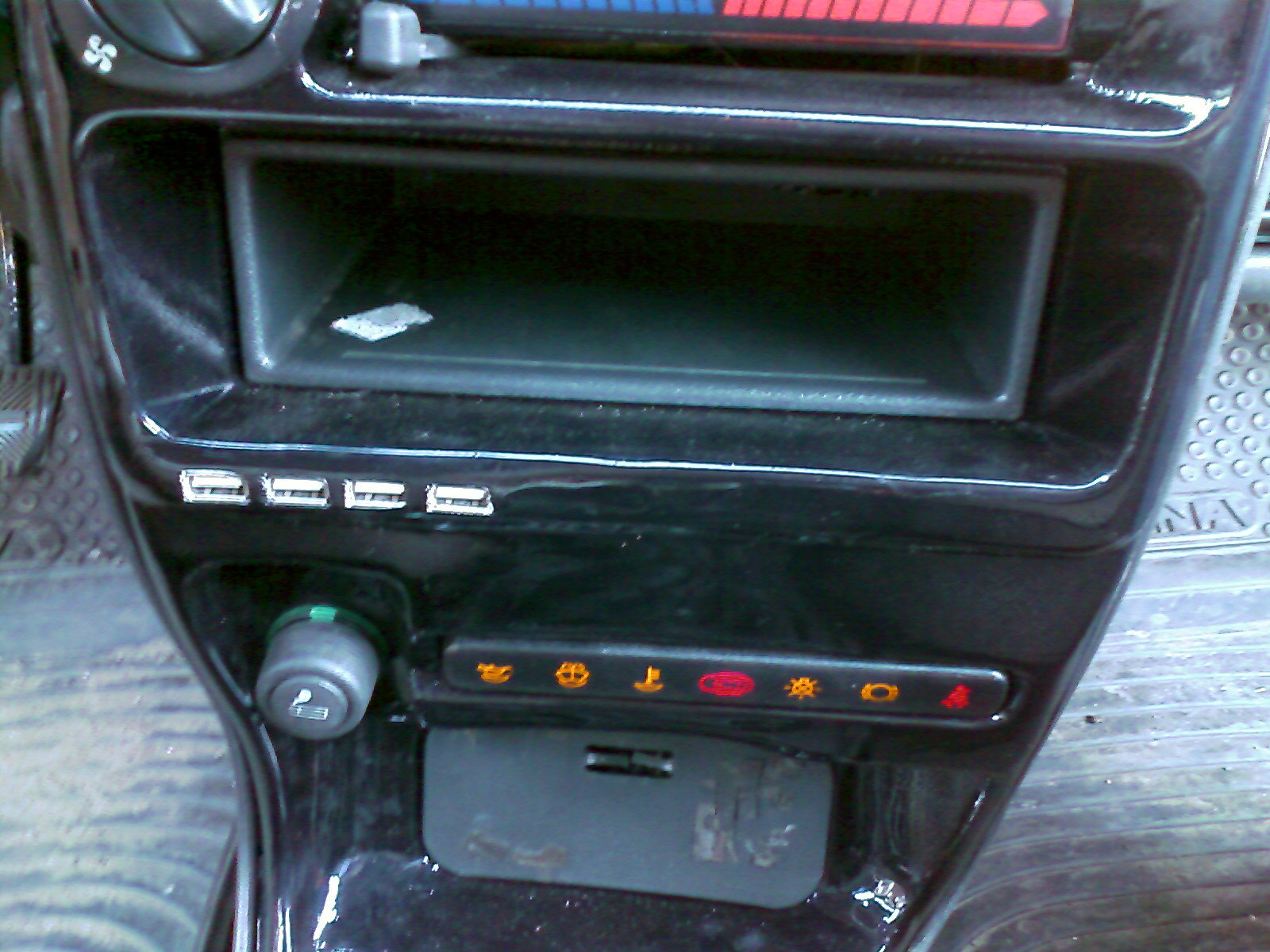 было размещен в средней консоли монитор 7,4" и usb-хаб на 4 порта. перенесены кнопки управления монитором вниз, перенесен бортовик в низ заместо пепельницы. компьютер размещен в бардачке. в багажнике 2 сабвуфера, 2 усилителя. в итоге: - монитор 7,4" - pentium 4 1,7 GGz - 512 mb ram - 40 Gb hdd - gps global sat - mather board asus - video GeForce 2 MX 64 mb - беспроводные мышка и клава - карта 5.1 звука - 2 сабвуфера по 400 Вт - 2 усилителя максимальной мощности 1,8 КВт - модем skylink u-300 вот впринципе и все |