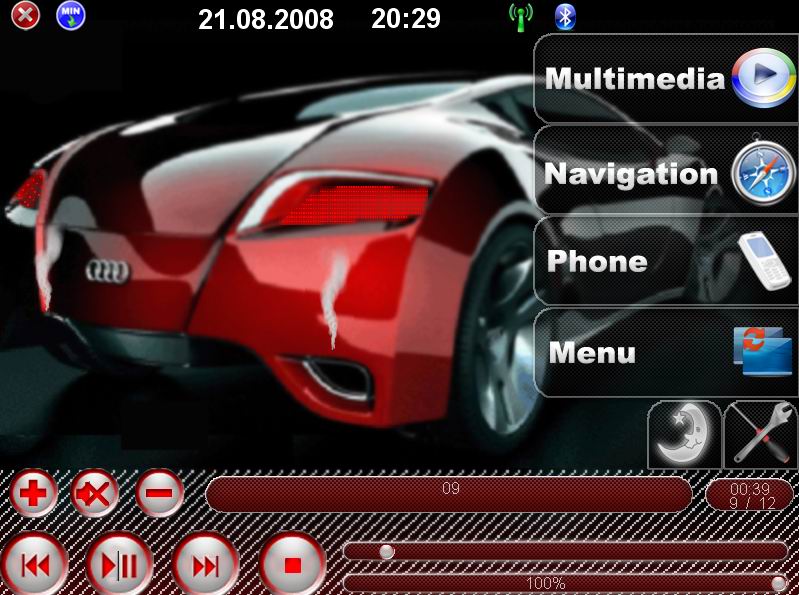 Представляю вам свой скин Audi выполненый слегка в тёмно красных тонах. Рисовал давненько всё ни как небыло времени доделать его! Выкладываю то что успел... Жду ваших коментов и предложений! 07.03.09 Нове обновление! Мы умеем: 1. Играем музыку 2. Смотрим Видео 3. Исполузуем 4-ре программы навигации 5. Блокнот 6. Паинт 7. Файло - менеджер 8. Погода 9. Калькулятор 10. Пока 6-ть интересных игр, но у меня есть ущё 20-ть скоро вставим их сюды 11. Менять обложки Мы не умеем: 1. Не могу определиться с программой просмотра изображений 2. ОБд2 3. Пока что не вставил интрнет 4. ДВД 5. Выбор Скинов 6. Статусы 7. Календарь 8. Миксер 14.мая.2009 Выбор обложек скина Видео с интерефейсом, старое Последний раз редактировалось pafftis; 01.07.2009 в 01:30. |