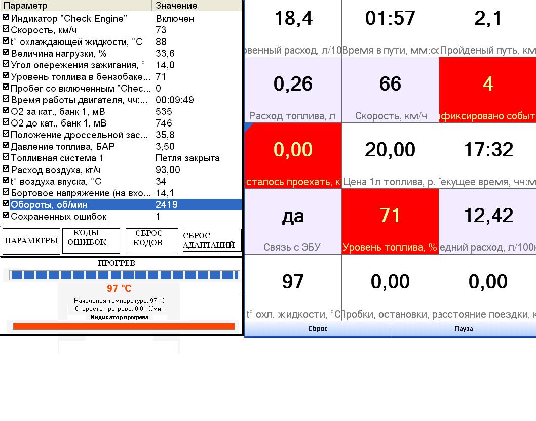 Демка "Чека" качается с оффсайта, в принципе, ее достаточно, чтобы понять, какие траблы возникают при использовании ее в фронтэндах: окно не масштабируется, отсюда - неудобство использования тача (кнопки мелкие); каждое новое окно открывается поверх основного и т.д. Конечно, если постоянно используется только окно трипа(что у меня, к примеру, и реализовано) - особых проблем нет. Но вот посмотреть диагностику, или тем паче - коды ошибок... Вообще же потенциал там неплохой - если бы удалось всторить все это добро в RR, да еще так, чтобы при запуске движка выводилась бы инфа о прогреве двигателя (типа, пока еще подождите... а вот теперь - полный вперед!), а потом шло переключение на трип с возможностью в любой момент пальцем переключиться на диагностику, посмотреть коды, сбросить их... Но чего-то я размечтался ![]() Опс! Коллега опередил - ну да ладно...