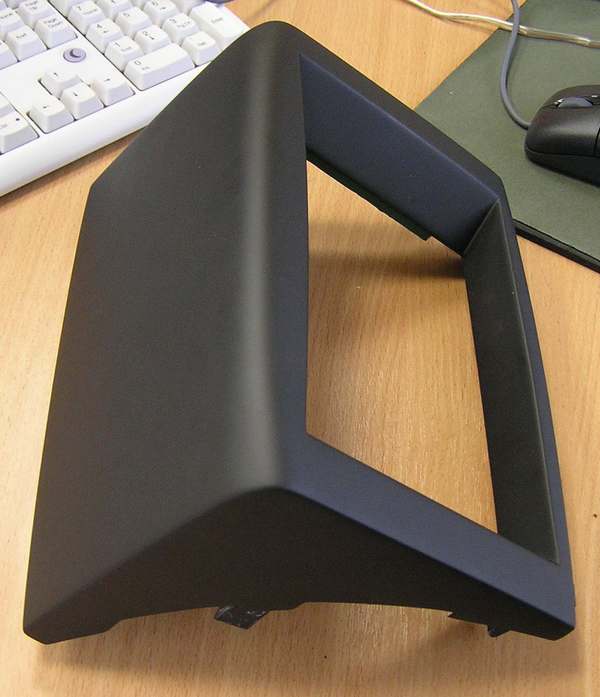 И вот уже готовая и покрашенная рамка: Красили не только саму рамку, но и смежные детали, а именно - рамка вокруг магнитолы и прямоугольная панель, что под часами. Что примечательного.. Для подбора цвета отдал рамку, что вокруг магнитолы. Цвет подобрали, в банке был похож. Стали красить - абсолютно не подходит. И тут человек предложил краску, что лежала под столом - типа радикально черный матовый. Попробовали на кусочке чего-то - Оно! Сегодня примерил - цвет один в один с родным получился. Даже фактура подошла. На выходных предстоит имплантация потрохов моника и протяжка кабелей. Пока нарисовался один недостаток конструкции. Кнопки моника не придумал как красиво организовать, поэтому их не будет. Будет выведен куда-то только глазок ДУ.