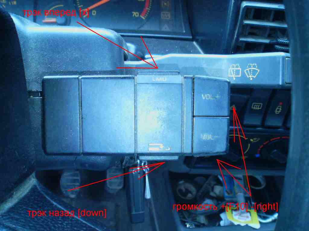 Есть клава - раскручиваем и прозваниваем контакты на платке при любой нажатой кнопке, те что замкнуты и есть контакты этой кнопки, припаиваем к ним свою кнопку (в моем случае от джойстика под рулем) и так столько раз сколько вам нужно. Можно так же просто проследить по дорожкам на пленочках вместо того чтоб звонить. После этого я поставил WinAmp в автозагрузку с плэйлистом всех песен и "забиндил" кнопки в меню preferences\global hotkeys.