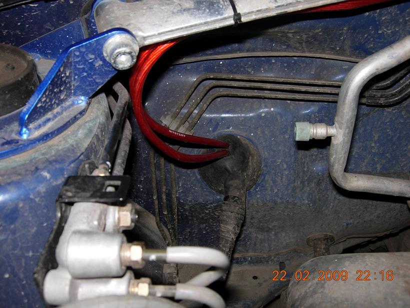 Провода провел от аккамулятора, закрепил к распорке хомутами. С лева есть место куда свободно все входит, ну а там рядом спечкой, т.е. кто будет делать поймет., Предохранители мистери, и кабе тоже (все в руси)