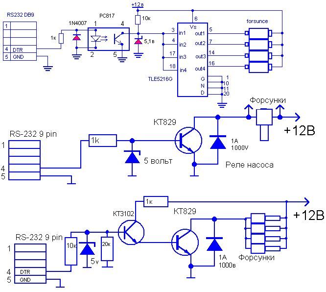 Нашел на просторах инета программку, для комплекса по очистке форсунок. Функционал конечно впечатляет, схема есть, сам проверил, работает. Программка работает только с ком портом, через мосты с юсб на ком, не работает. Девайс снят с производства, и продаються версии работающие по юсб. http://www.cartest.nnov.ru/injector.htm