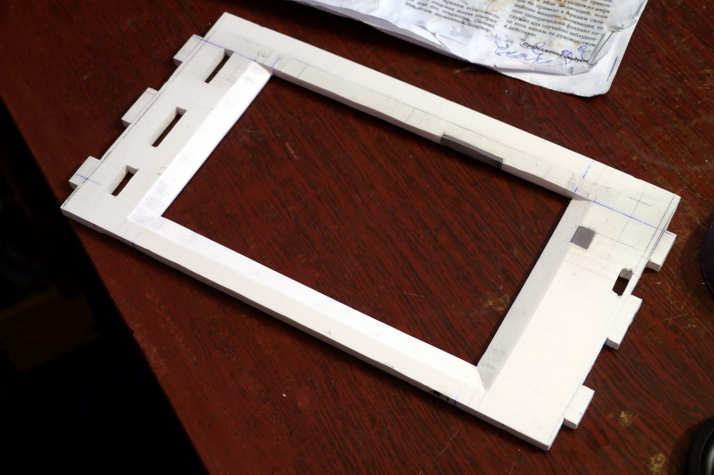 Сделать с нуля оказалось для меня проще, чем пытаться засунуть в остатки бардачка матрицу 10.1" и контроллер, ну и сам привод подъёма проще реализовывается. От бардачка я взял только крышку верхнюю, чтоб с панелью сливалось, а по началу хотел делать крышку так же с нуля. |