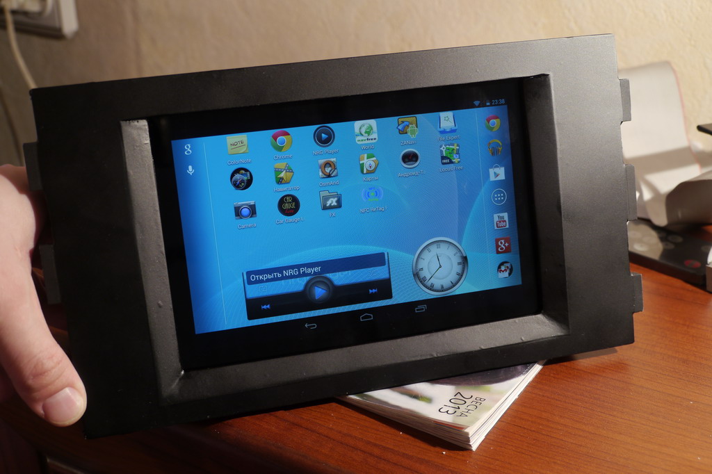 Вырезал ножовкой по металу, и шкуркой края подтёр - вот и вся обработка, ничего особенного ![]() Кнопку power нажимать не нужно, планшет сам будет включаться при подачи ACC, и выключатся при выключении. |