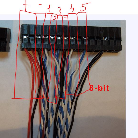 Даташитом лень воспользоваться! Ща, буду искать где у меня это шлейф лежит, найду - сфотаю. То что я выкладывал фото это я год назад разбирался с битностью LD1 и обнаружил, что китаёзы халявят...урезают 8 бит на 6-сть. |