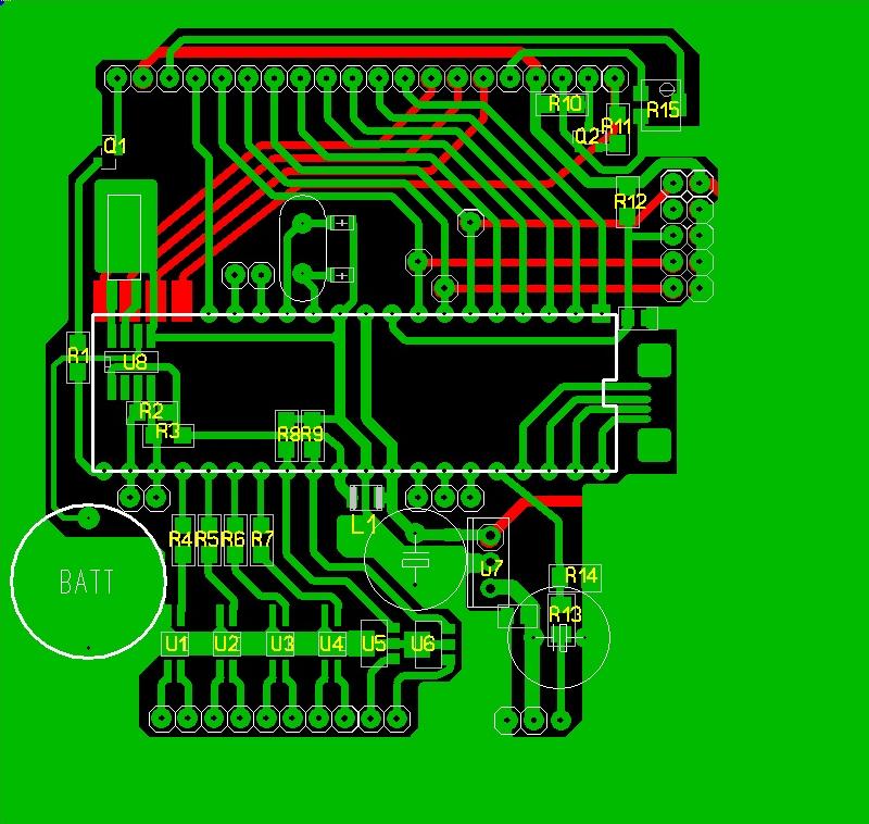 Печатка с смд, все резюки 1206 по 10К. КРоме двух которые сидят на базах транзитсторов они по 1К. Зеленый цвет не зеркалится, красный зеркально распечатывается для ЛУТ.