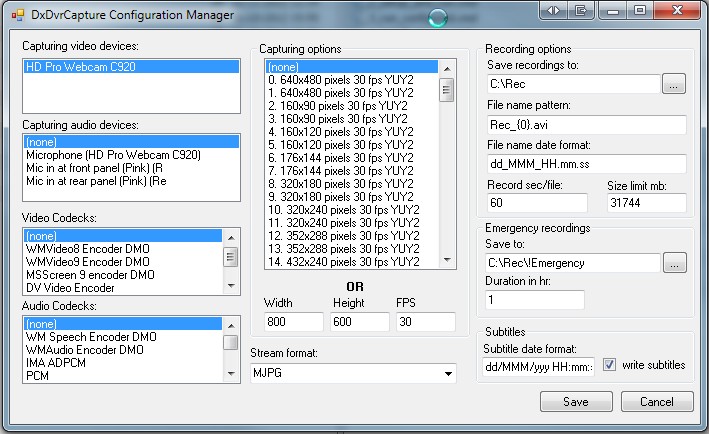 Думаю, что было бы не лишним иметь возможность вести запись без звука - предусмотреть введение знака вместо номера апудиоустройства.