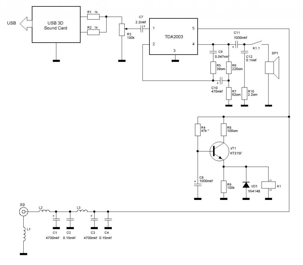 ![]() Конструктивно собрано все на одной п/п по схеме на картинко один. Первая звуковуха была извлечена из корпуса и из неё выпаяны разъемы микрофона и наушников, USB разъем без изменений. Вместо разъема наушников впаяны, соблюдая распиновку, 3 проводочка (левый, правый, земля) и подпаяны к усилителю. Остальные две подключались в первозданном виде с помощью мини-джека. Питание +12в берется с блока питания настольного компьютера. USB кабелем A-F (удлинитель) - с того же компьютера. Все просто отлично! Усилок работает, релюшко щелкает! Все красиво! Пока не вотнешь USB - тут же и сразу же с дымком и характерным запахом сгорает звуковуха! Шо за хрень несуразная!? Или я совсем отупел!? Сдается мне что тут опять земля какая то, шоб её, виновата... но физики процесса понять не могу... Самое прикольное то, что моя самодельная звуковуха на PCM2902 работает в тех же условиях на 5 с + ! Правда питается она от тех же 12в, что и усилок через преобразователь 7805, +5в USB вообще не задействованы. Наверное излишне говорить, что ДО подключения к этому усилителю все три звуковухи работали нормально и с наушниками и с компьютерными колонками. Не дайте в дурдом попасть! Просветите в чём тут секс! В принципе мне уже пофик - звуковухи кончились - буду ставить PCM2902.Но хочется хоть задним числом разобраться где зарылась сабака! Последний раз редактировалось Alex-L; 08.10.2010 в 22:08. |