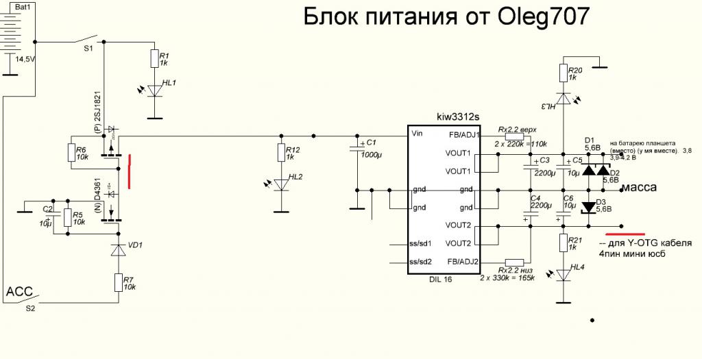Когда то в начале я не хотел лезть в батарею и датчик холла. Поэтому зарядка планшета шла через ПОГО (те же яйца, что и ЮСБ, только ток мощнее берёт), а экран тух программно, по признаку пропадания зарядки. звук брался с наушников. Использовалась тогда обычная зарядка в прикуриватель. Когда запускался одновременно плеер и навителл, то зарядка была меньше разрядки или около того. За 6 часов езды с навигатором батарея скорее разряжалась, чем заряжалась. Потом пришла звуковая (2704). ![]() Хаб я не хотел, потому звуковуху повесил на ЮСБ через Y-OTG кабель. Звук меня приятно удивил для 10$ вообще лепота. НО... 1 - Пошла разрядка батареи. То есть заряда по ПОГО ( примерно 0,6-0,7А 5,0 вольт) не хватало чтобы поддерживать тупо поверамп и звуковуху. 2 - если подать на пого 5 вольт и прицепить y-otg кабель, то планшет будет давать питание на ЮСБ (питая нашу звуковуху). А вот если в этот момент убрать питание на пого, то планшет продолжал питать ЮСБ-звуковуху и вообще показывал зарядку (питаясь от батареи) ![]() Даже экран не тух ( таскером по признаку зарядки). Вот тогда мне это дало стимул конкретно заморочиться БП(3 а сейчас и уже 4 версии). Демонтировал планшет, вывел сигнальный пин датчика холла, подпаялся параллельно батарее, прямо к материнке, (к черному и красному) оставив контроллер. Смысл в том, что батарея, даже в хлам разряженная, должна была поддерживаться блоком питания и не проседать ниже 3,8 вольт, заодно подрабатывая конденсатором (как аккумулятор в автомобиле). НО. Одновременно подавалось питание 4,85 вольт на ПОГО. ( для признака зарядки). Планшет, имея штатное юсб питание, начинал успешно заряжать батарею (когда напруга поднималась выше 3,8, KIW3312s понижал зарядный ток на батарею, в итоге схема находила баланс и прекрасно себя чувствовала). Хреново чувствовал себя только контроллер батареи, который сбил свои реальные значения заряда-разряда и показывал ~33-40%. Меня это не заботило, поскольку система наконец таки начала работать стабильно. ![]() До одного утра... что то разрядило батарею планшета ниже 0%. Как бы и хрен бы с ним, у нас же блок питания даёт 3,8В, должно хватать с запасом. Ан нет, планшет (с патчем автозагрузки) грузит систему, та, получив от контроллера батареи заряд 0%, пишет ВЫКЛЮЧЕНИЕ и вырубает тело. У того патч автозагрузки, видя признак заряда на ПОГО, включает планшет и так по кругу, пока контроллер заряда не сообщит системе, что батарея уже 1%. Решения этой бяки оказалось 3. 1- вырубать планшет раньше блока питания. планш через 2 часа, а блок через 3. 2- отрезать от контроллера батареи шину данных( не помню точно, вроде бы I2C там). Тогда в трее болтается красный значёк батареи с 0% заряда, но система не вырубается. 3- прошить ядро, которое чихать хотело на батарею ( ядро Даниэля в моём случае.) 3 способ был самым правильным, поскольку тогда я прошил автодроид 1,2 (слимКэт, основанный на стоке), и УРА, батарея стала показывать всегда 100%(правда при этом перестала мерять температуру, что летом плохо, а зимой, при -25, хорошо). Значёк батареи я за ненадобностью скрыл. С тех пор всё работает стабильно и предсказуемо.