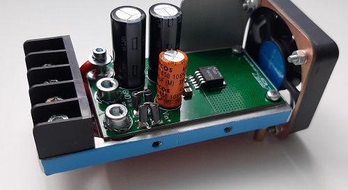 Для ещё большего теплоотвода сборку поместил внутрь алюминиевой профильной трубы квадратного сечения 60 мм.Х 60 мм. с обдувом вентилятором с торца получившегося корпуса. Межплатная алюминиевая пластина толщиной 8мм одной гранью через двухсторонний теплопроводный скотч закреплена на корпус, что даёт ещё дополнительный отвод тепла. Вентилятор 50мм х 50мм, на подшипнике качения, напряжение питания +/-12V (подключил его к выходу импульсного DC-DC на 6,8V). Обдув гибридного модуля дал ожидаемый результат. Теперь при продолжительном предельном токе нагрузки в 3А, температура на корпусе LT3083 составляет 46°С. Тест делал при комнатной температуре 25°С. Корпус из алюминиевой профильной трубы 60мм х 60мм. Толщина стенок 2мм. Длина корпуса -- 145 мм. Этот "гибрид" использовался для подключения внешнего питания для USB звуковой карты Amanero в составе системы автозвука. Последний раз редактировалось skanch; 17.09.2022 в 11:35. |