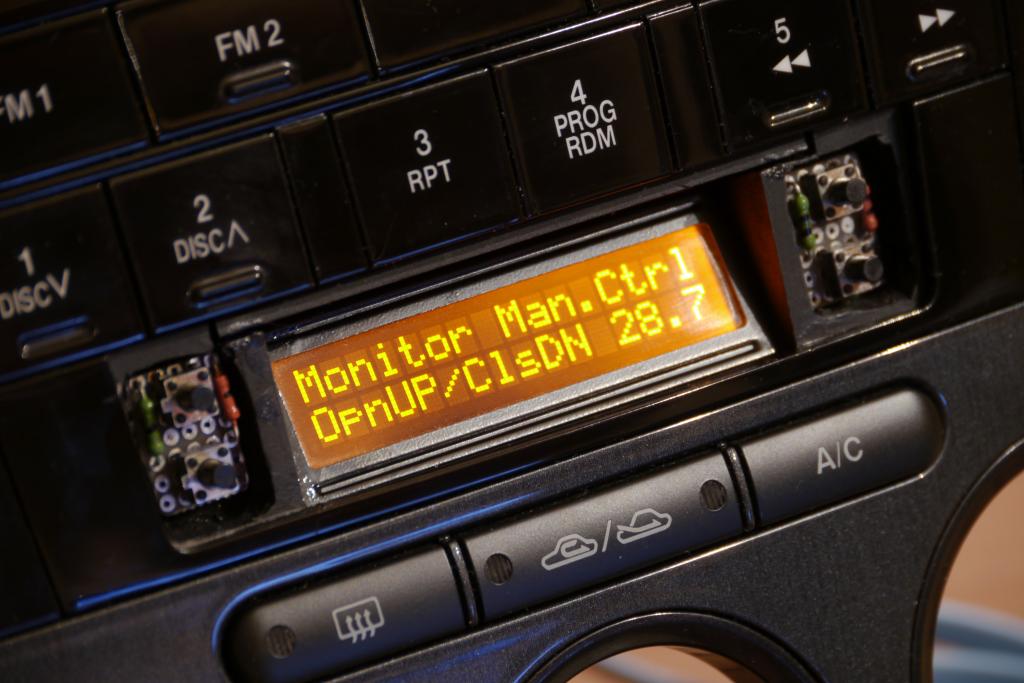 Покрасил из баллона, матовой чёрной краской,крепёж дисплея и кнопок. Затонировано (карявенько) лицевое окошко из оргстекла плёнкой для стёкол, в 2 слоя. Первый покрывает полностью всю поверхность оргстекла, второй слой только область кнопок. Собрал всё в кучу. |