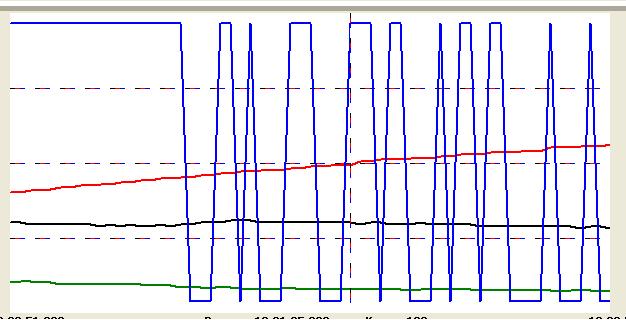 GASCHE у мну подобная синяя линия у кратковременной топливной коррекции, пики да именно для того чтоб лямдой учуять оптимальную смесь. а долговременная, вообще ленивая, меняется с ооочень большим временем.