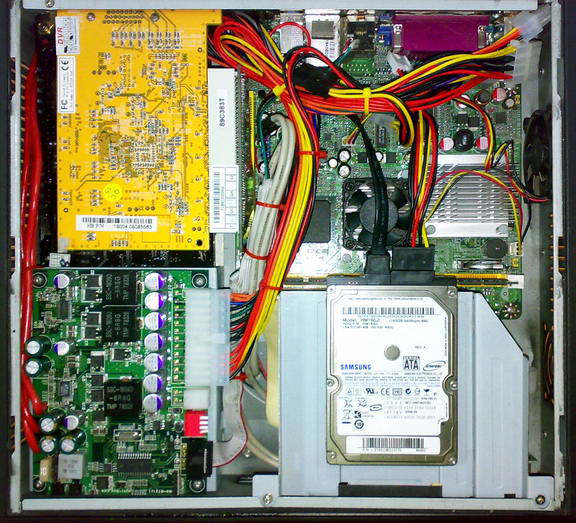 Так у меня появился этот чудный блок питания. После небольших раздумий винчестер занял место под CD-ROM, а вместо винчестера разместился БП. Разъем под отвертку был выпаян, а провода впаяны в плату. |