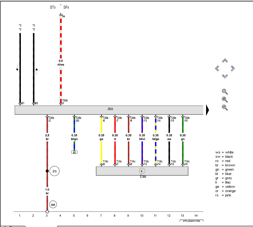 http://www.audi-portal.com/en/diagnostic/ecu_12343.html Хотя у меня б/у не такой, видимо модуль E380 такой же, потому что выписав сигналы, идущие к E380, получаем: Wake UP to multimedia operating unit -E380- Res HU to multimedia operating unit -E380- Res BT to multimedia operating unit -E380- Data to multimedia operating unit -E380- Data from multimedia operating unit -E380- Earth to multimedia operating unit -E380- Voltage supply to multimedia operating unit -E380- Т.е. как раз 7 сигналов, видимые на моей схеме. Осталось понять кто из них кто. ![]() |