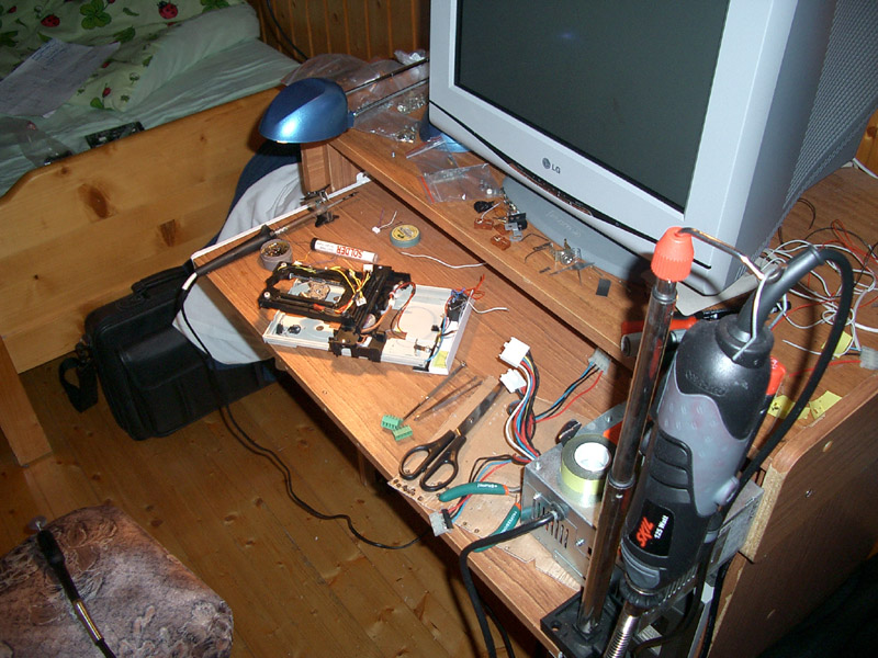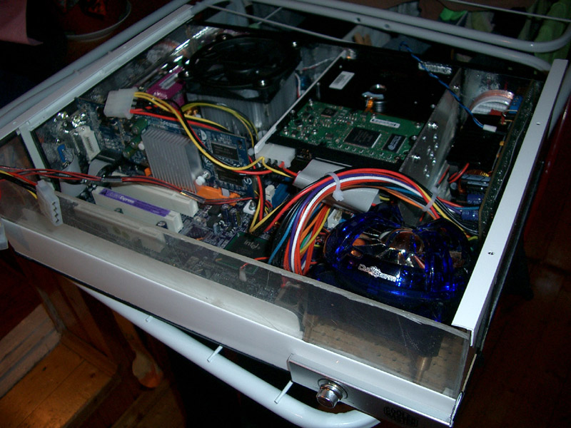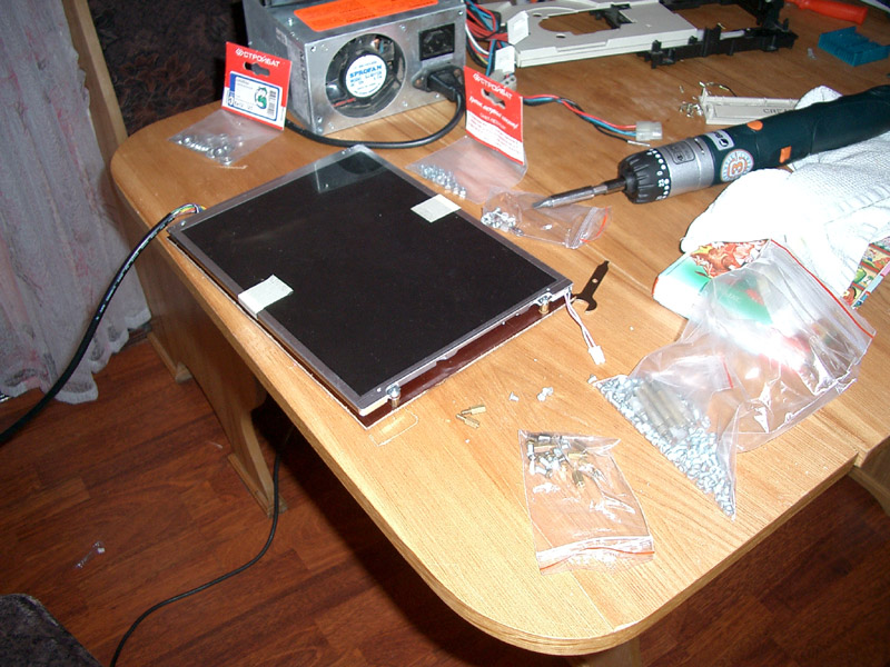 Вот я принёс для затравки несколько фоток - процесс изготовления корпуса компа и привода монитора+видео работы привода(3Мб).