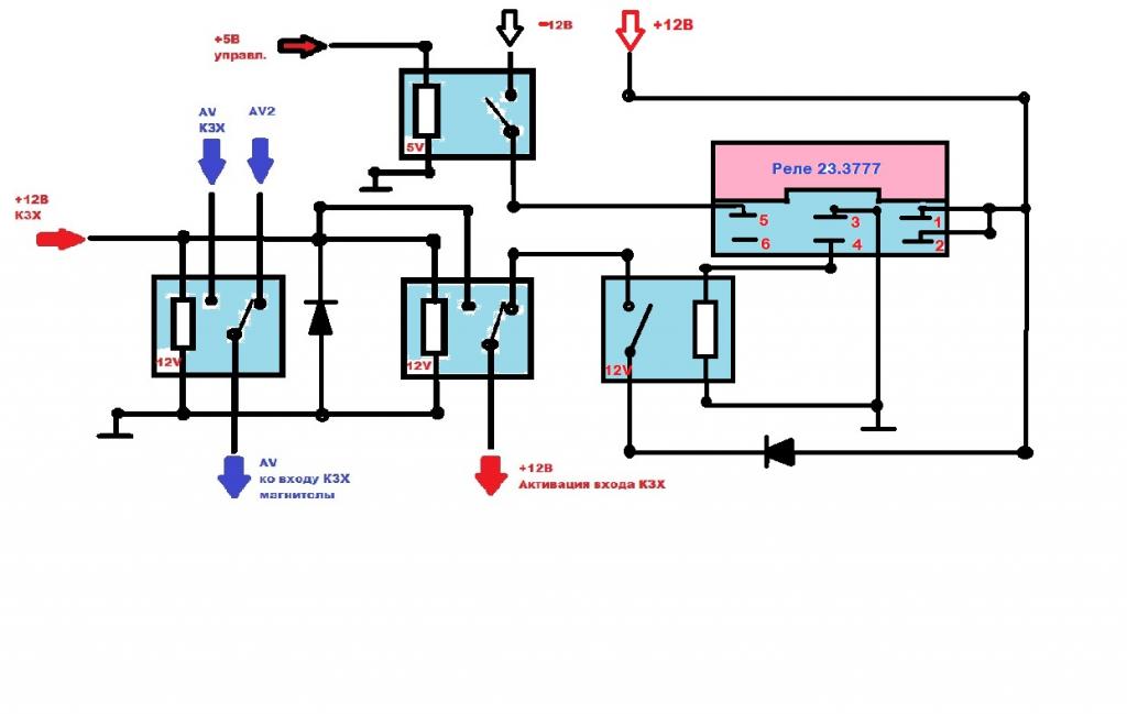 Подправил схему сам, посмотрите пожалуйста в схеме выше, я забыл что мне нужен триггер, а не реле, по моему есть лишнее реле но какое? Приложено схема реле 23.3777.